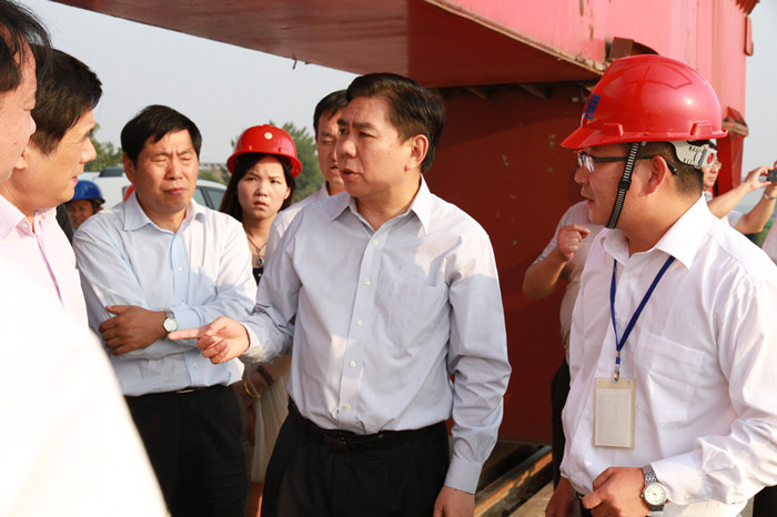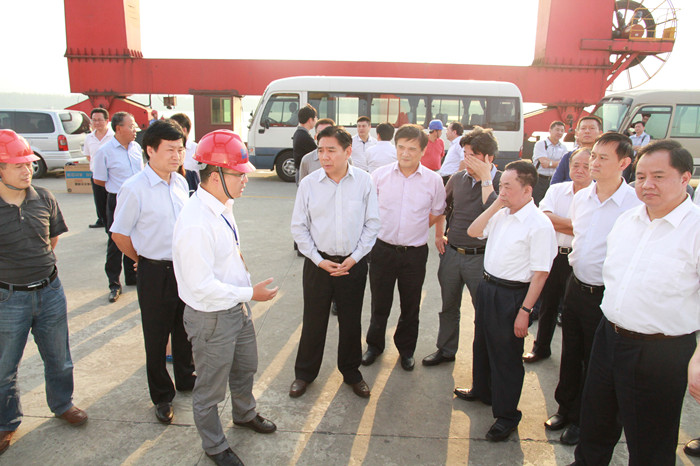 10月14日下午,國家發(fā)改委副主任徐憲平,交通運輸部綜合規(guī)劃司副司長蘇杰,國家發(fā)改委基礎(chǔ)產(chǎn)業(yè)司司長黃民,國家發(fā)改委規(guī)劃司副司長袁喜祿等領(lǐng)導(dǎo)一行,在湖南省人民政府副省長陳肇雄,長沙市領(lǐng)導(dǎo)余合泉等領(lǐng)導(dǎo)的陪同下就長江經(jīng)濟帶建設(shè)來長沙新港調(diào)研。湖南長沙新港有限責(zé)任公司董事長、總經(jīng)理、黨委副書記唐忠良,董事、副總經(jīng)理張韜,董事、長沙集星集裝箱碼頭有限公司副總經(jīng)理辛華等接待。 在長沙新港集裝箱碼頭上,集星公司副總經(jīng)理辛華首先向徐憲平副主任一行介紹了長沙新港一、二期碼頭規(guī)模、貨源、業(yè)務(wù)、運營等情況,著重介紹了湘江長沙綜合樞紐試通航初期和長沙海事為長沙新港開辟樞紐“綠色通道”后,碼頭業(yè)務(wù)及生產(chǎn)情況對比。辛華介紹說:“樞紐‘綠色通道’開辟以來,船舶進出閘通過艘次提高26.84%;集裝箱吞吐量達46412標(biāo)箱,比‘綠色通道’開辟之前提高86.28%。”隨后,新港公司副總經(jīng)理張韜向徐憲平副主任一行介紹了三期工程規(guī)劃、建成規(guī)模、建設(shè)進展等情況。 徐憲平副主任指出,湖南這些年發(fā)展迅速,強大的水運網(wǎng)絡(luò)給予了湖南對外經(jīng)濟發(fā)展強大的支持。長沙新港碼頭地理位置優(yōu)越,硬件設(shè)施完備,足夠滿足碼頭日常生產(chǎn)需求;港口規(guī)劃及管理科學(xué)規(guī)范,集裝箱碼頭管理系統(tǒng)十分先進;碼頭生產(chǎn)井然有序,一派繁忙景象。徐憲平副主任肯定了長沙新港這幾年建設(shè)、經(jīng)營所取得的成績并強調(diào),三期建成后,港口功能將更加完善,有望成為國內(nèi)一流的現(xiàn)代化內(nèi)河港口,長沙新港前景可觀。 |