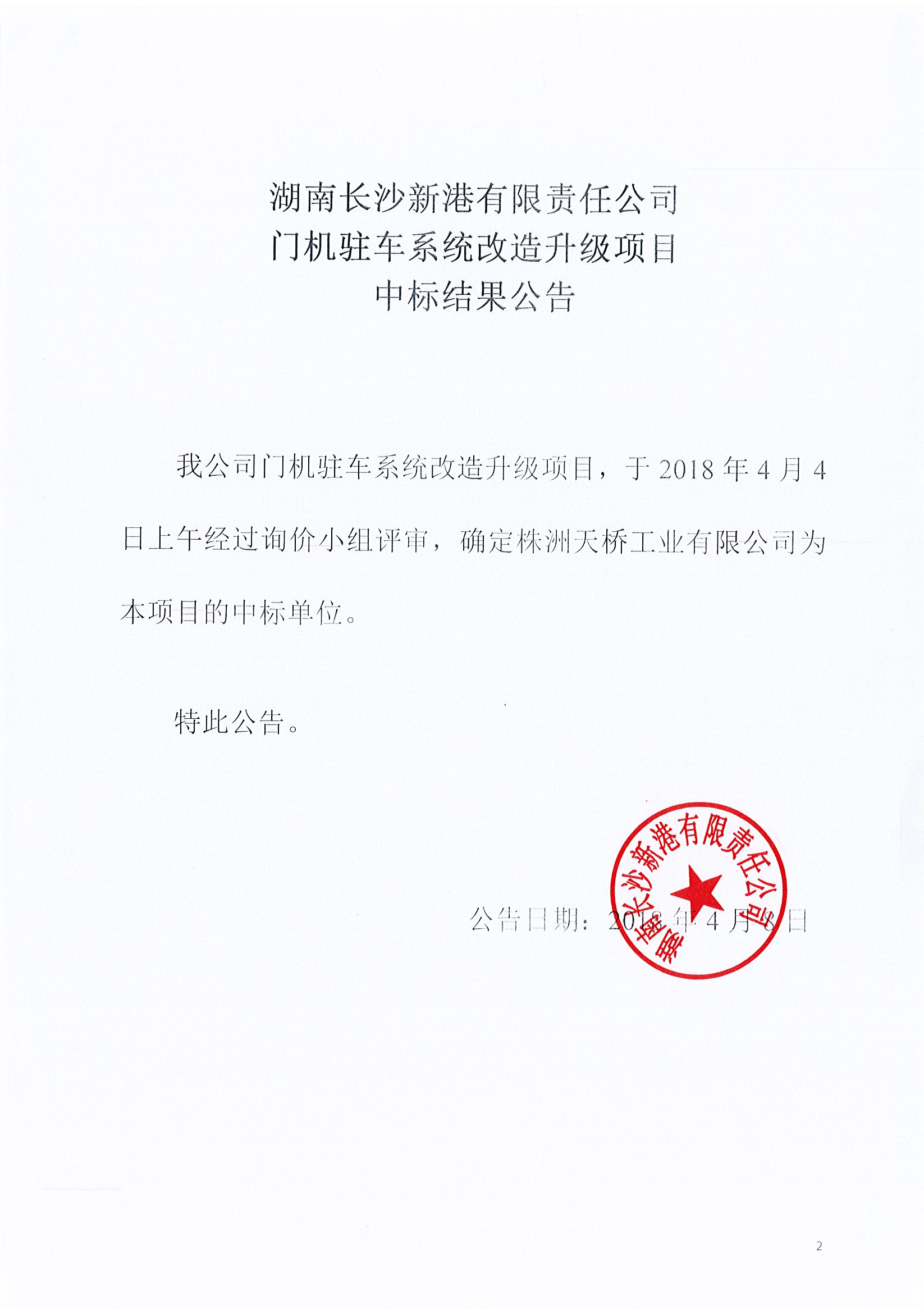 湖南長沙新港有限責(zé)任公司 門機(jī)駐車系統(tǒng)改造升級(jí)項(xiàng)目中標(biāo)結(jié)果公告