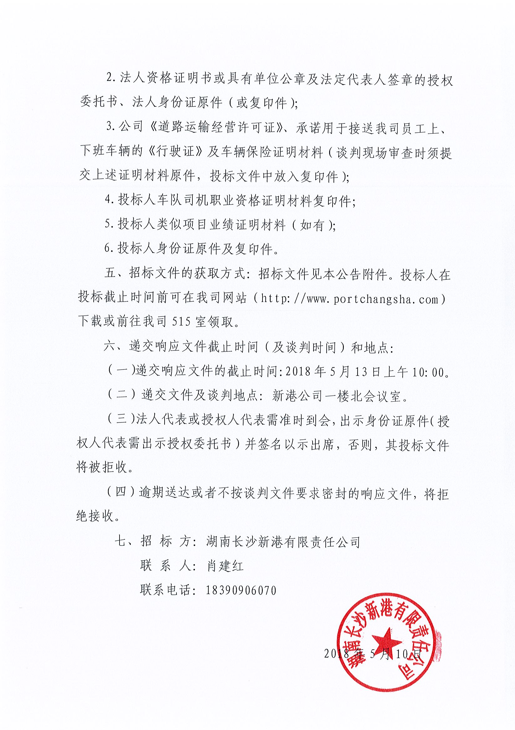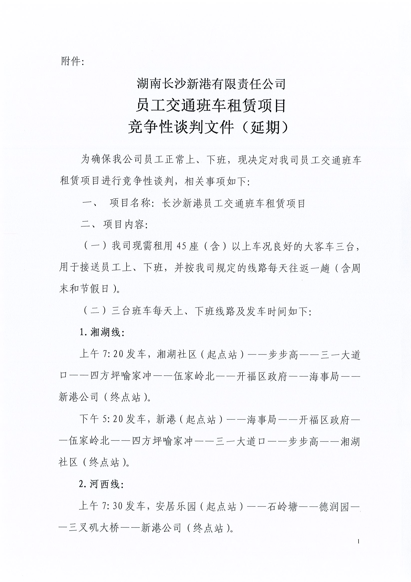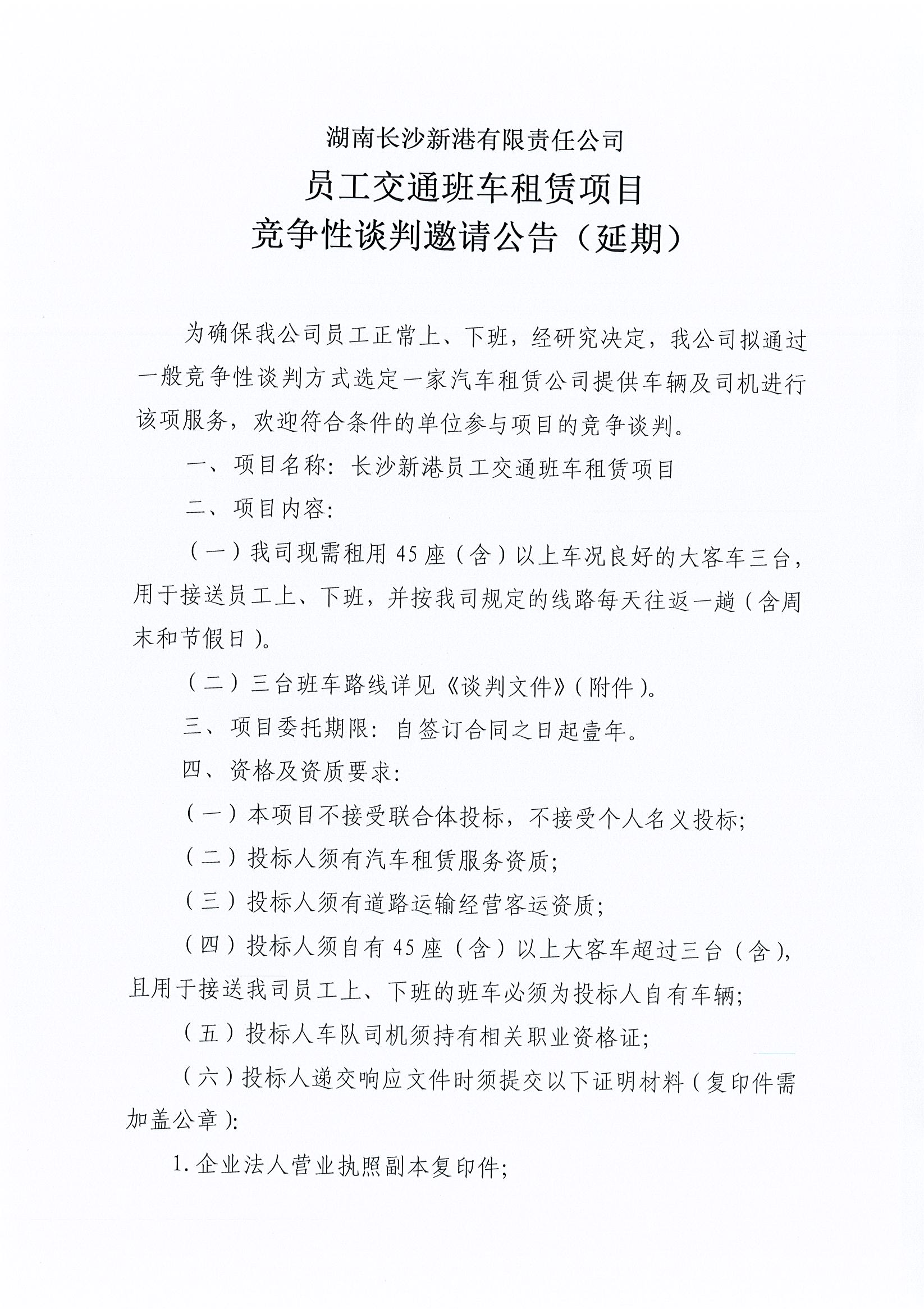 湖南長(zhǎng)沙新港有限責(zé)任公司 員工交通班車租賃項(xiàng)目競(jìng)爭(zhēng)性談判邀請(qǐng)公告(延期)