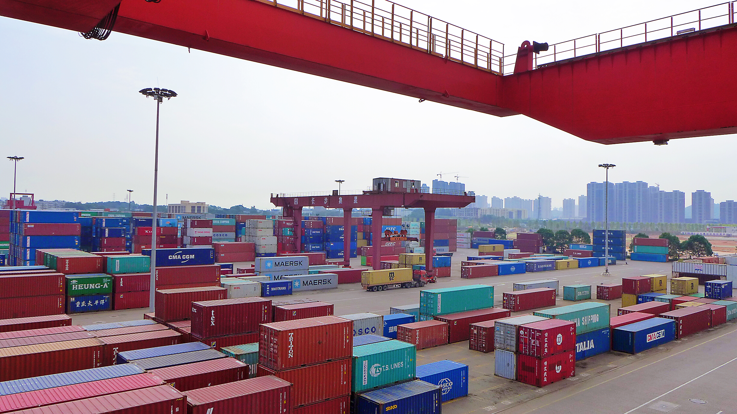 9月5日,長沙新港碼頭貨物裝卸呈現(xiàn)一派繁忙景象。借助“一帶一路”倡議和長江經(jīng)濟帶國家戰(zhàn)略。