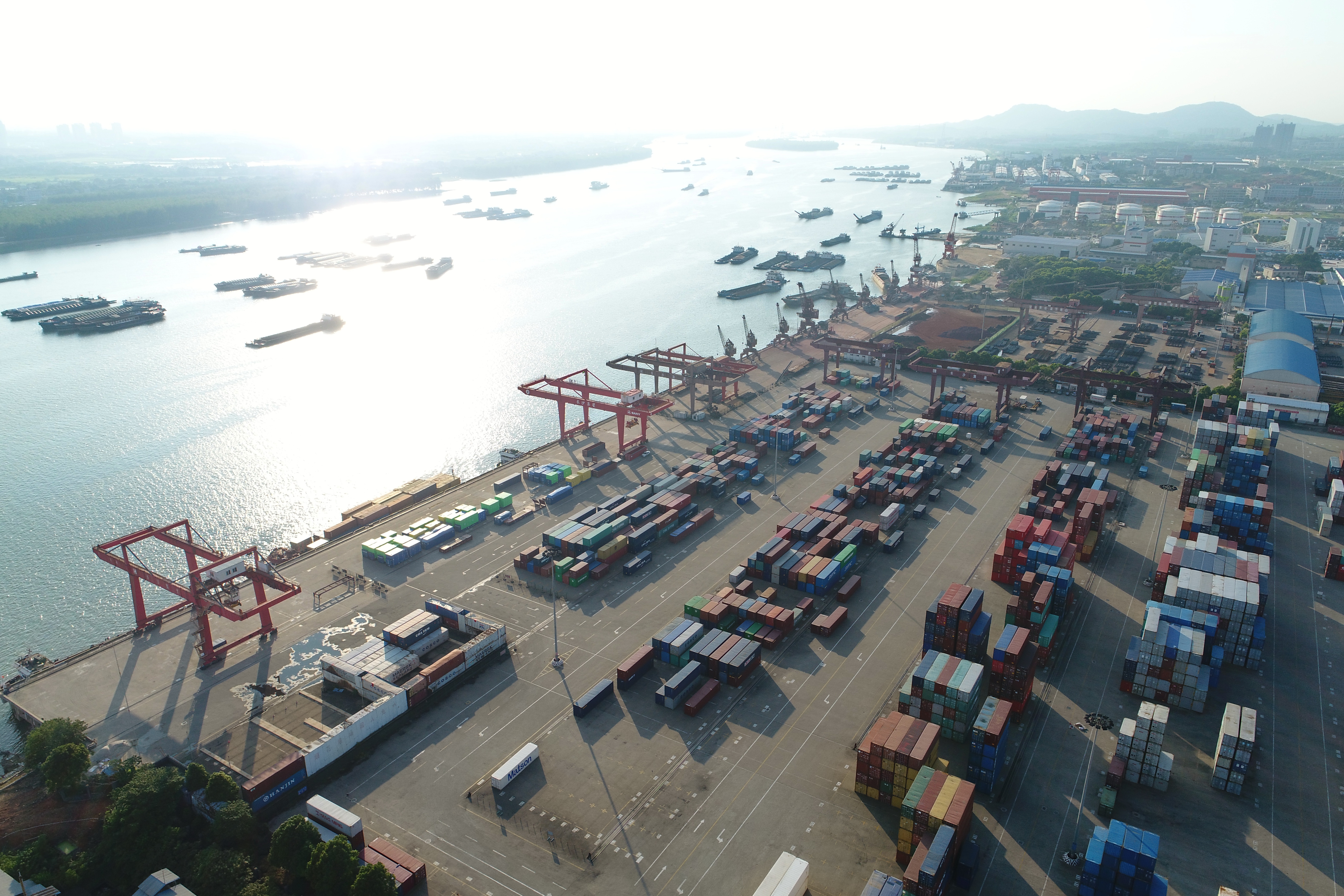 紅網(wǎng)時刻記者 劉露 長沙報道 童迪、胡富君 攝影 金秋9月,巨大貨輪停泊在長沙城北的港口上,裝船機上下?lián)]舞臂膀,大型集裝箱鱗次櫛比,岸上吊車來回穿梭,一片繁忙景象…