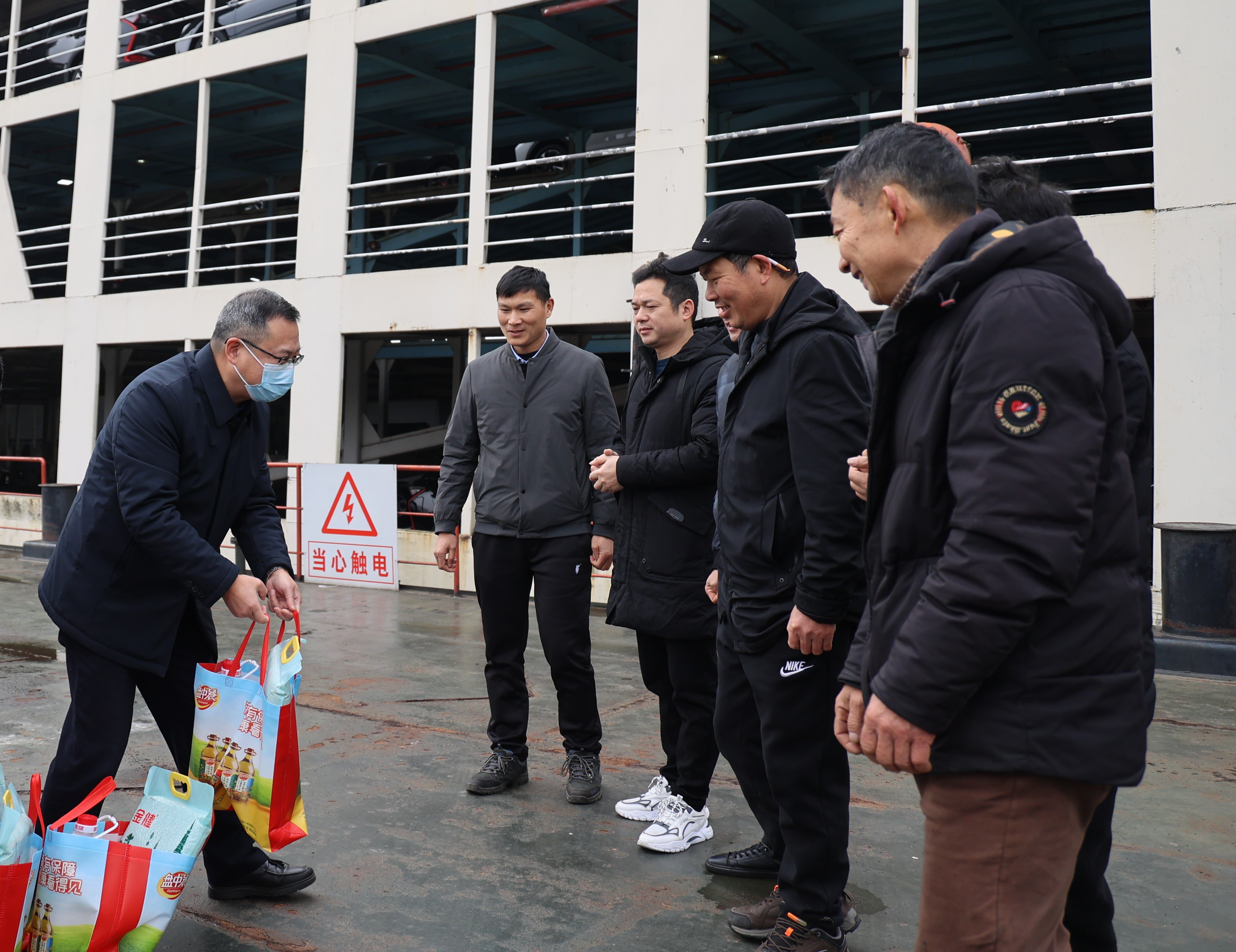 春節(jié)將至,歲寒情深。船員作為一個特殊的職業(yè)群體,工作和生活在船舶上需面對惡劣氣候、封閉環(huán)境、緊張工作等情況,常年不能回家,新春佳節(jié)更難以與家人團(tuán)聚。為了讓在港船舶在長沙港度過一個歡樂祥和的春節(jié),2022年1月30日,新港公司黨委副書記、總經(jīng)理辛華,黨委委員、紀(jì)委書記黃紅星及副總經(jīng)理鄭美洲帶領(lǐng)市場營銷部、生產(chǎn)運(yùn)營部工作人員對已到港船舶進(jìn)行春節(jié)前的親切慰問,并給予安全提醒。  聲聲問候顯真情,句句話語暖人心。船員們表示非常感謝來自新港公司的慰問和節(jié)日祝福,在平時的工作中已感受到了新港人的高素質(zhì)和專業(yè)化水平,節(jié)日期間更感受到了新港公司優(yōu)質(zhì)服務(wù)和人性化服務(wù),讓漂泊在外的船員們感受到了滿滿的關(guān)懷和溫暖。 |